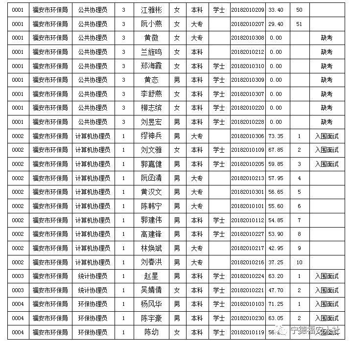 2018宁德福安市环保局招聘劳务派遣人员面试人员名单公示